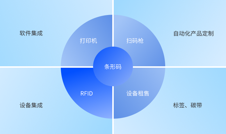 上海鋯瑞技術有限公司業(yè)務分為9大模塊,條形碼,RFID,打印機,掃描槍,軟件集成,設備集成,自動化產品定制,標簽碳帶和設備租售。 以條形碼和RFID為起點,以打印機,掃描槍和標簽碳帶為基礎,逐步技術延伸,層層遞進,實現識別軟件系統開發(fā),自動化檢驗設備集成,自動化產品定制等自主創(chuàng)作研發(fā)能力,滿足各類企業(yè)物聯網應用需求。